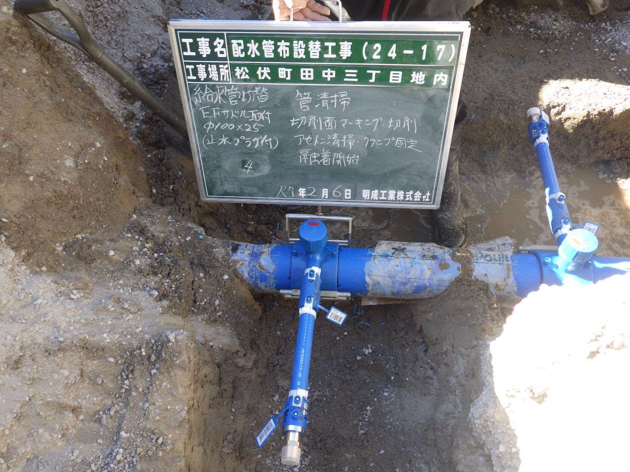 既設の古い管から、新しい耐震管へ切り替える工事を行いました。