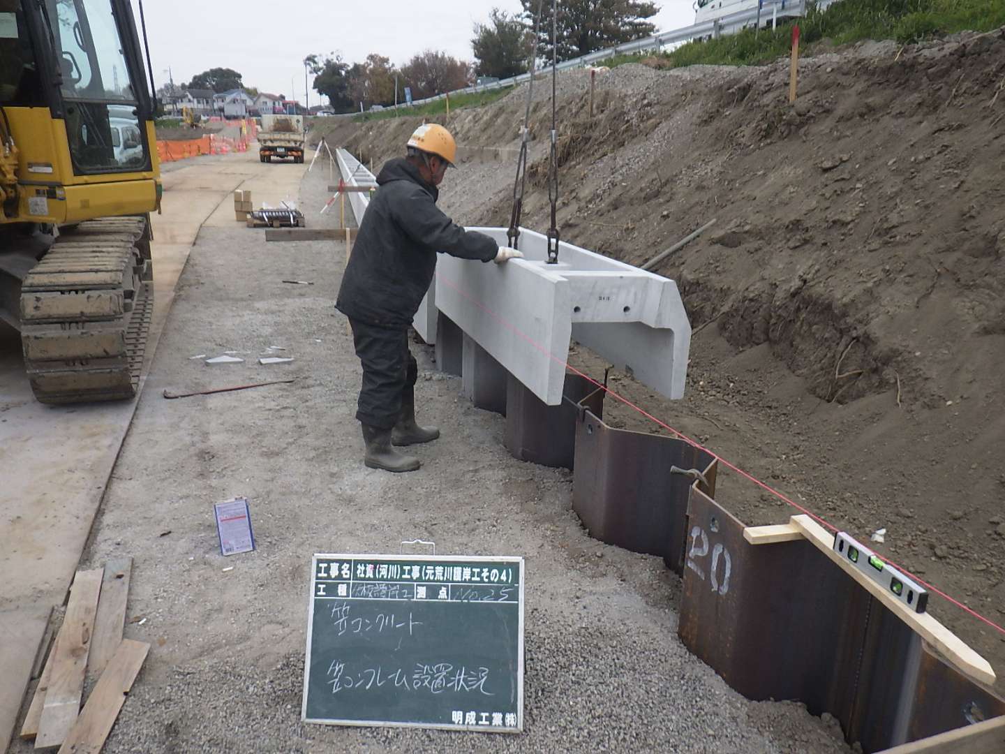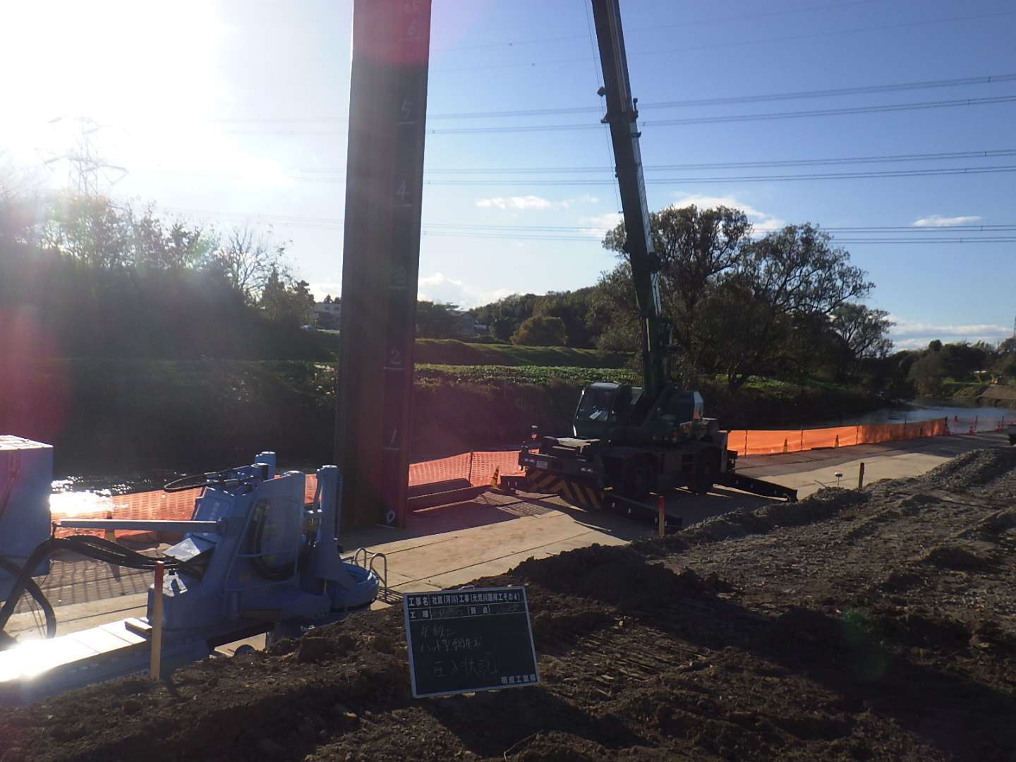 河川土工 1式、矢板護岸工(鋼矢板) 76枚