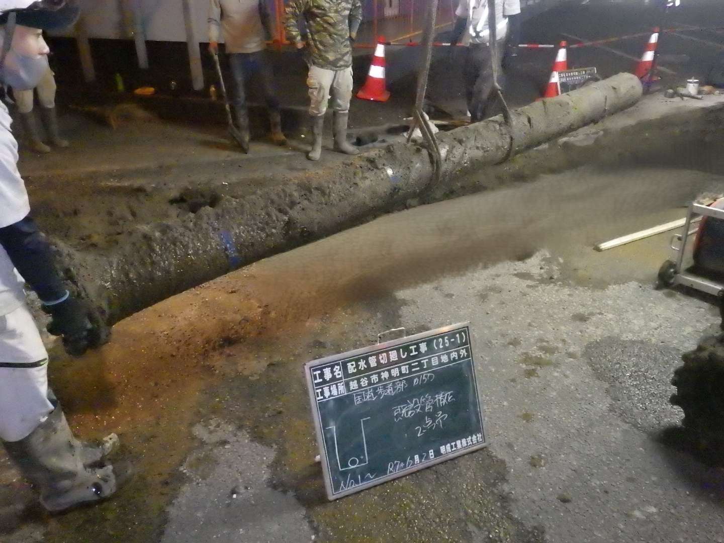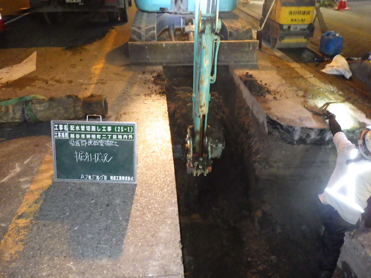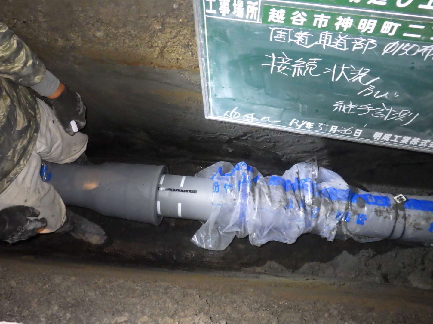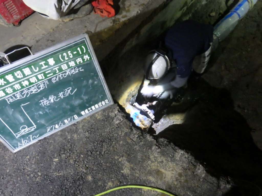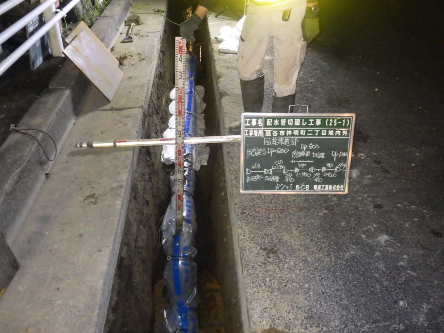 越谷市神明町二丁目地内における国道4号線の水道管切廻し工事