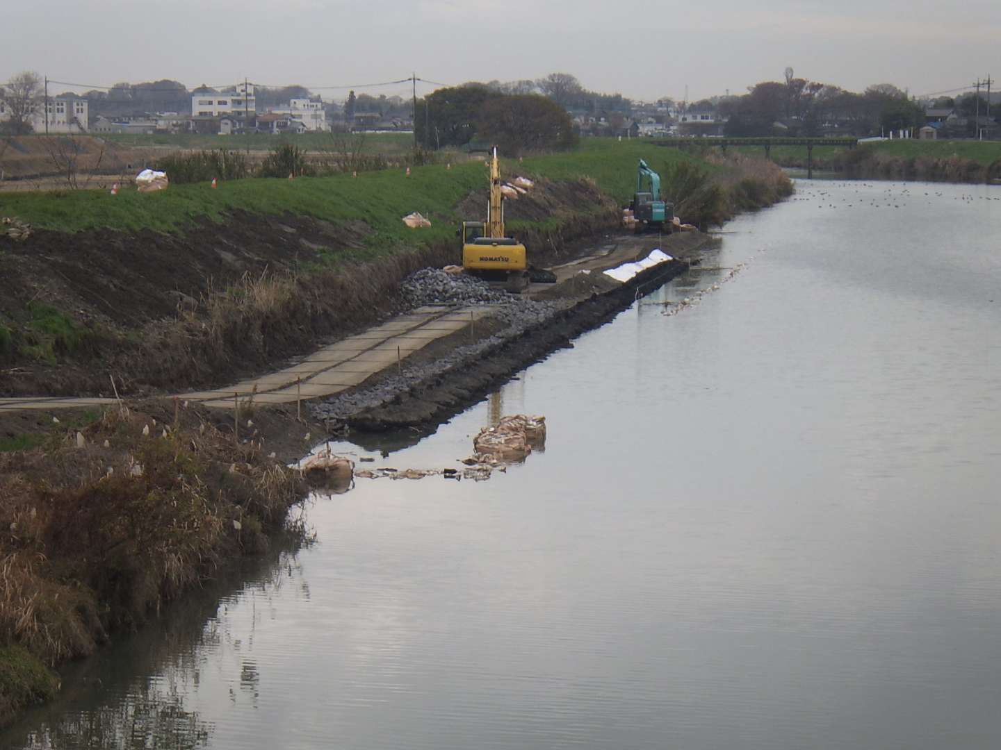 松伏町内を流れる一級河川中川の護岸工事