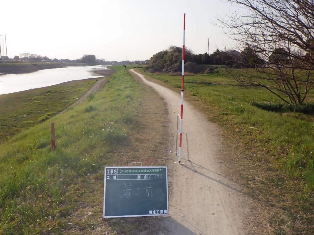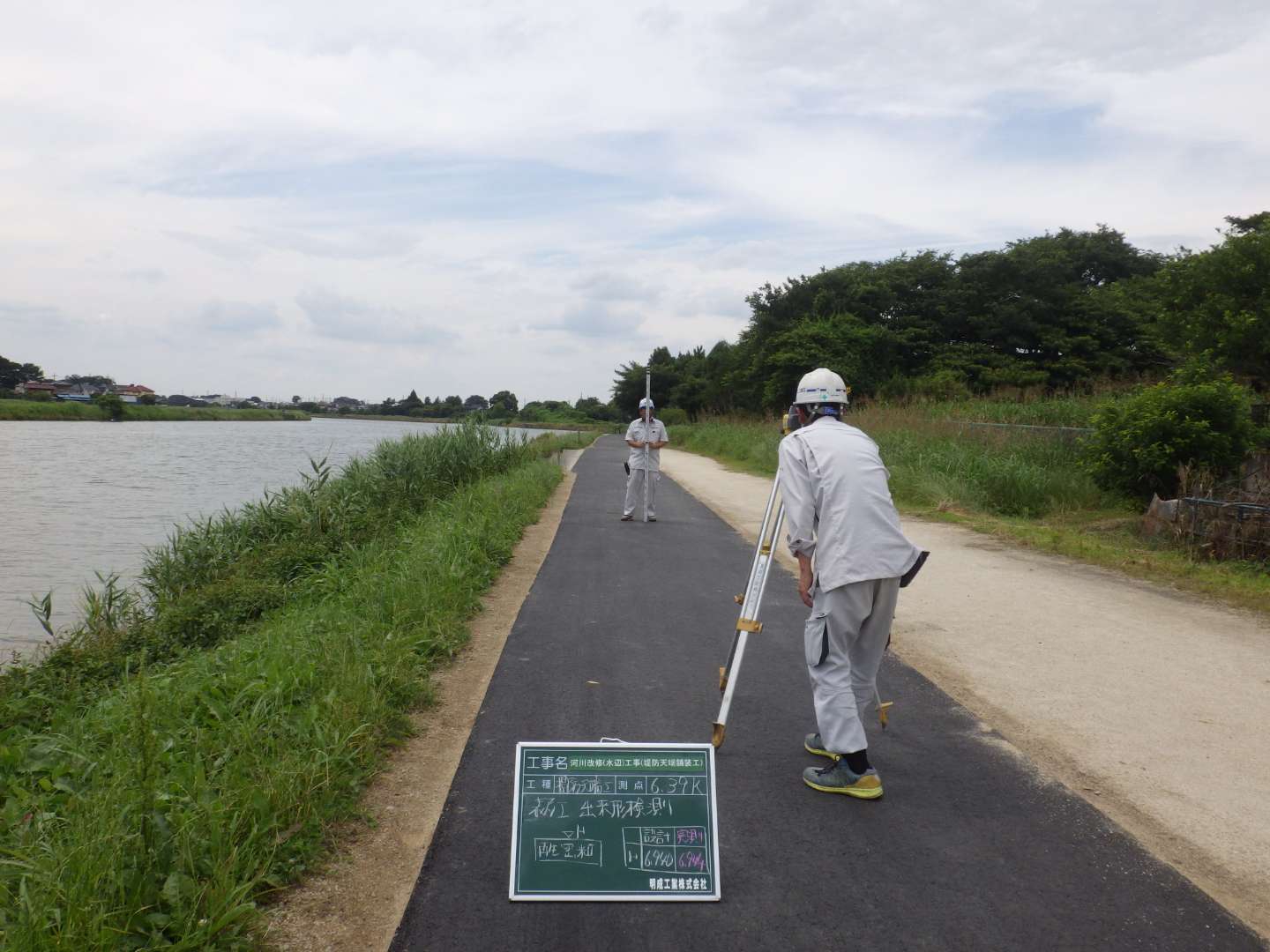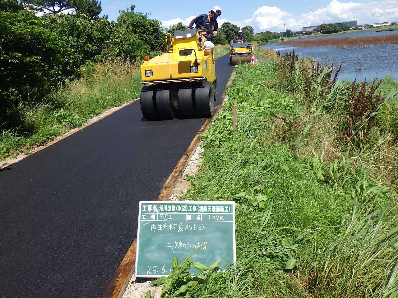 河川改修(水辺)工事(堤防天端舗装工)
