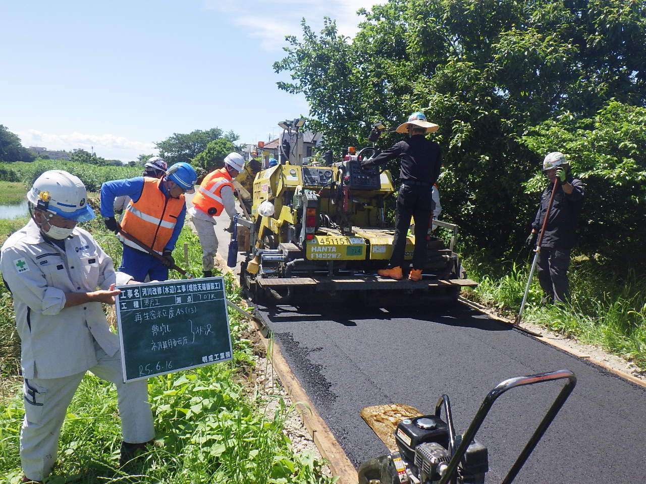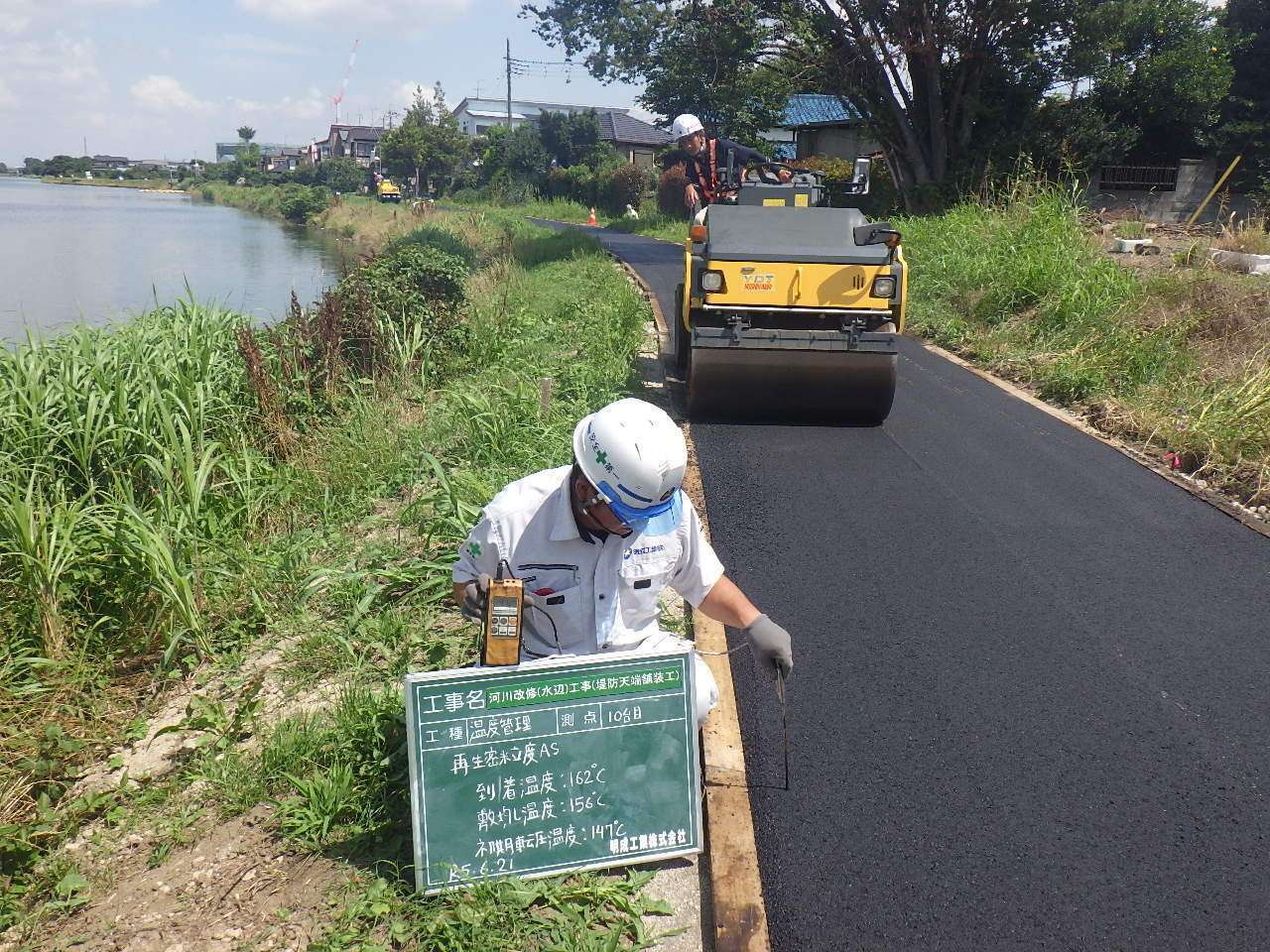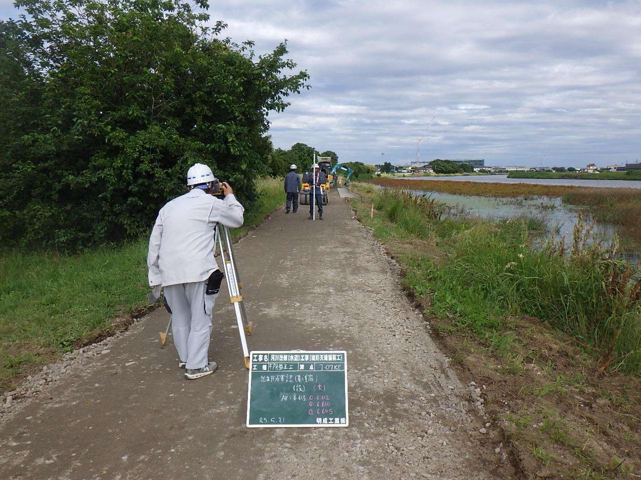 河川改修(水辺)工事(堤防天端舗装工)