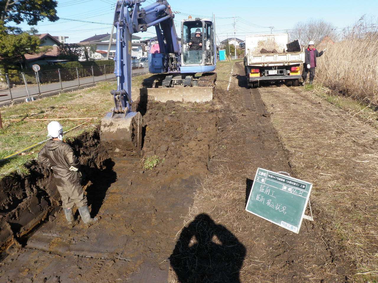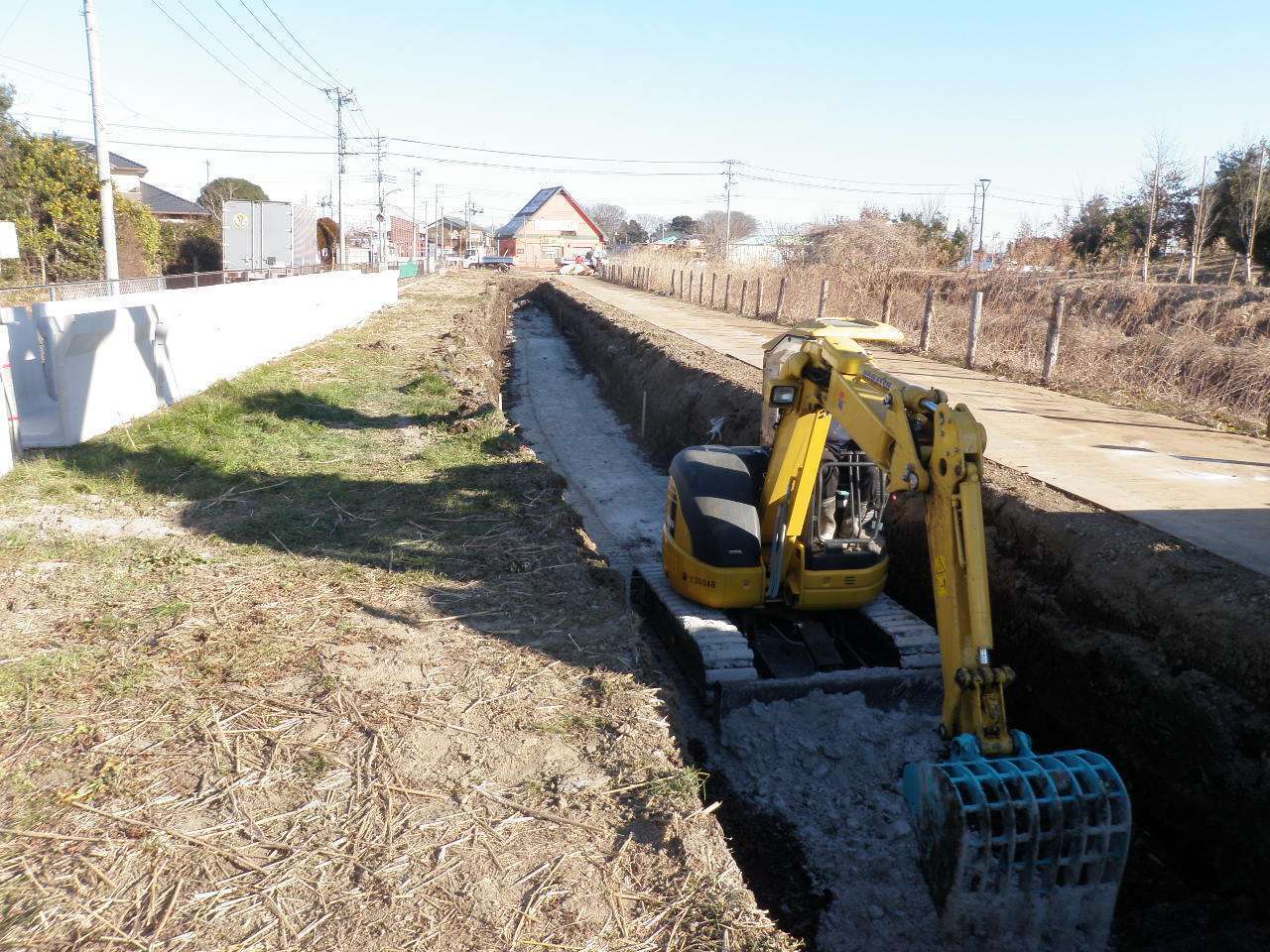 松伏町田中地内での配水管布設替工事です。 既設の古い管から、新しい耐震管へ切り替える工事を行いました。 まずは道路を掘削し、既存の本管を撤…