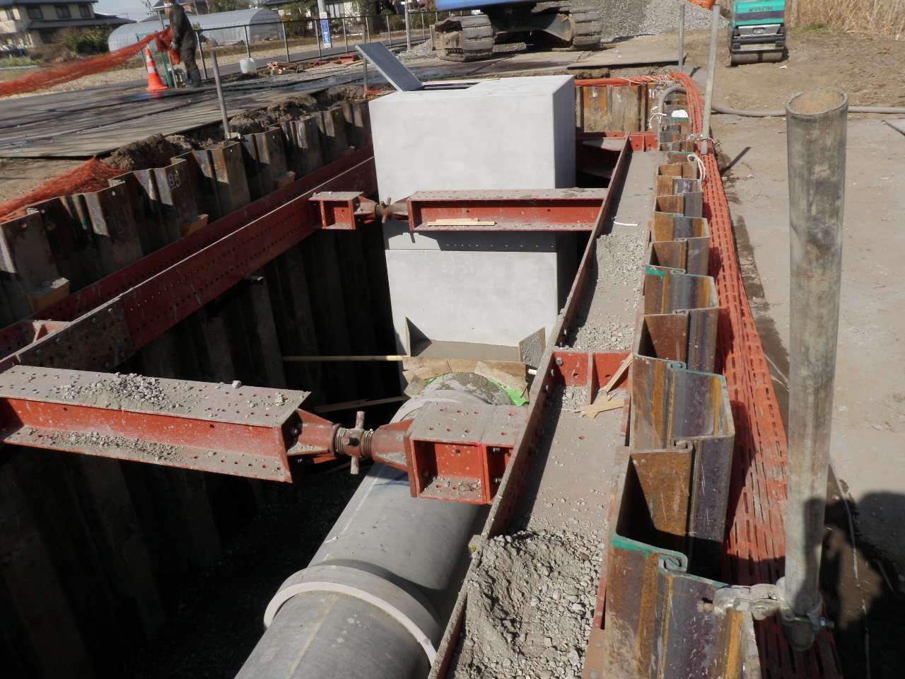 越谷市神明町二丁目地内における国道4号線の水道管切廻し工事 工事概要 (新設)GXφ150 L=449m、GXφ100 L=28m、仕切弁…