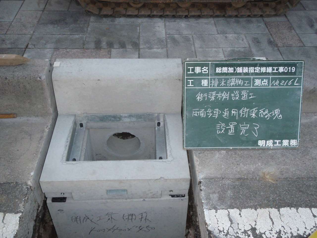 表層工(半たわみ) A=123m2、街渠桝設置 30箇所、取付管 L=50m