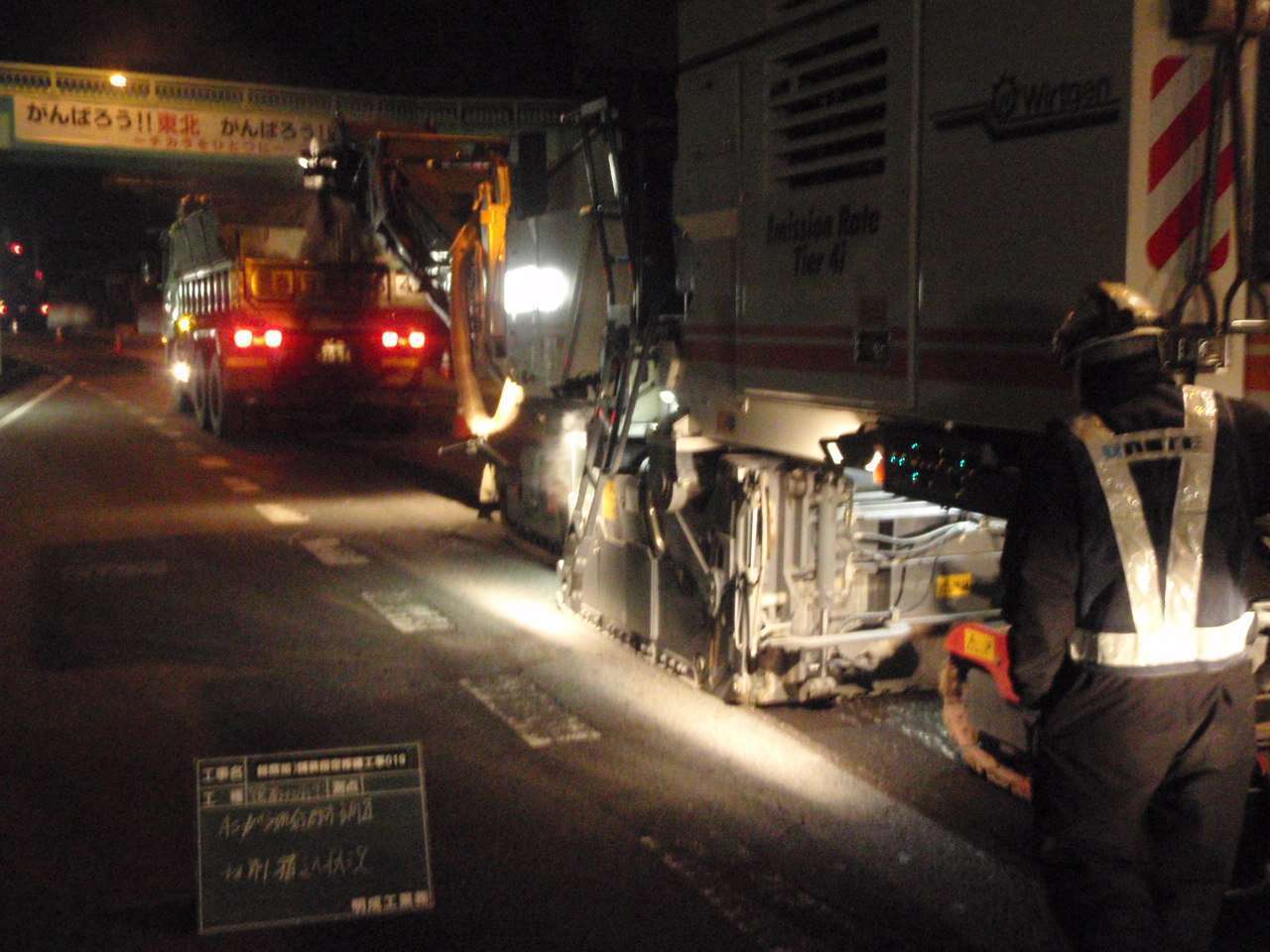 路面切削工 A=2,177m2、基層工(改質Ⅱ型) A=2,114m2